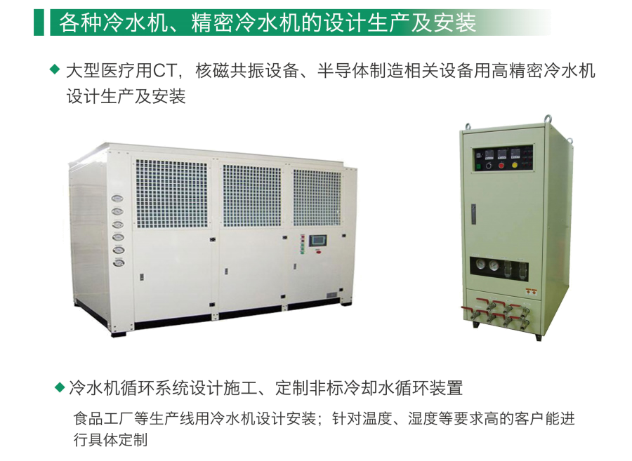 高精密温控设备 各种机电设备工程 厂房装修改造工程 洁净棚、无尘室等净化工程 无尘净化相关产品 各种冷水机、精密冷水机的生产及安装 各种冷水机、精密冷水机的设计和施工 各种精密空调、环境实验室设备